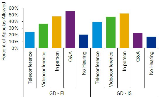 - The use of video conferences or telephone hearings instead of in-person hearings, which causes problems for some appellants