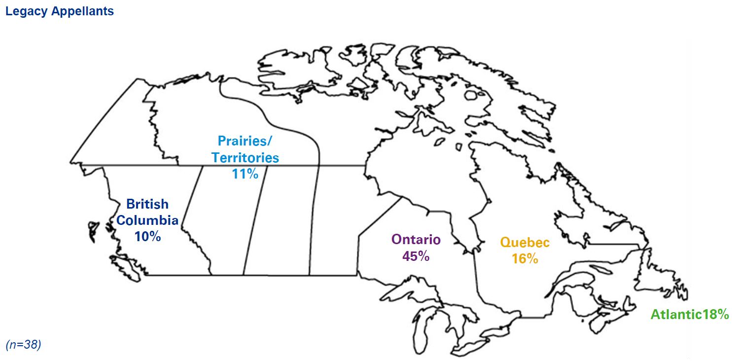 | Legacy appellants or client representatives | 88 | 13 | 40 |