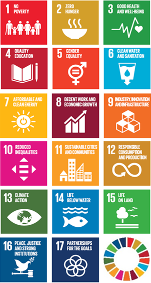 Graphic portraying the United Nations 17 SDG icons and the SDG logo.