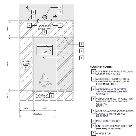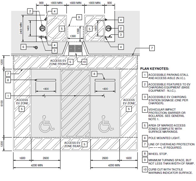 - Figure 33: Accessible EV charging station – multiple – below grade