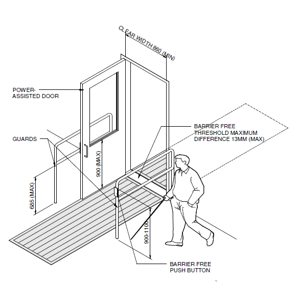 - Source: Figure 34(a), CSA/ASC B651:23 Accessible design for the built environment. © 2023 Canadian Standards Association.