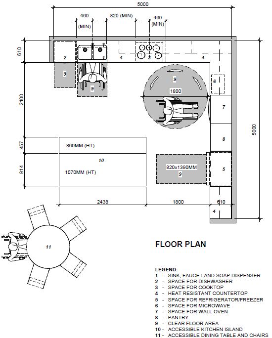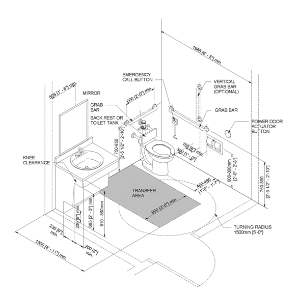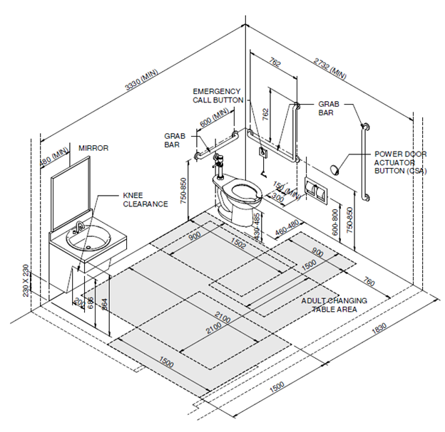 - ensure a barrier-free path of travel throughout the room by avoiding obstacles on the floor or mounted on the wall