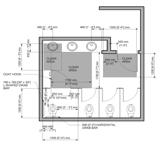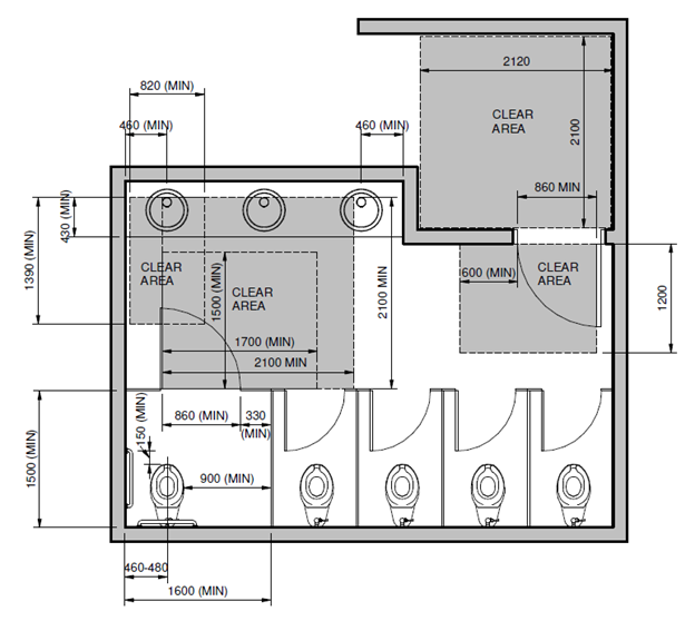 - Figure 5: Multi-stall washroom with accessible stall general floor plan