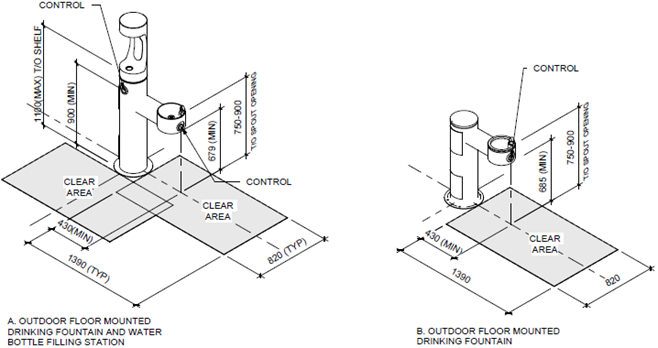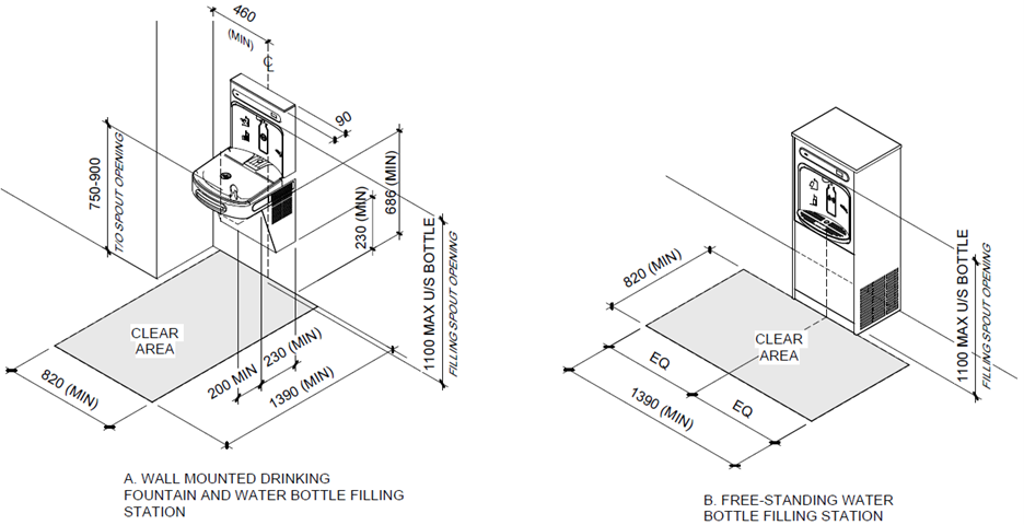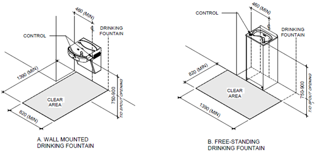 - Figure 37: Indoor drinking fountain - wall-mounted versus free-standing