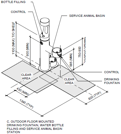 - Figure 40: Outdoor drinking fountain - drinking fountain with bottle filling station and service animal basin