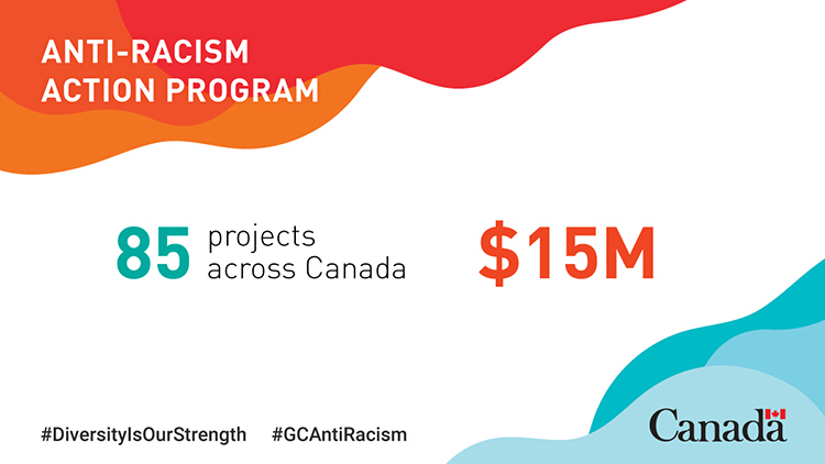 The Government of Canada is providing $15 million through the new Anti-Racism Action Program for 85 anti-racism projects across the country to address barriers to employment, justice, and social participation among Indigenous Peoples, racialized communities, and religious minorities.