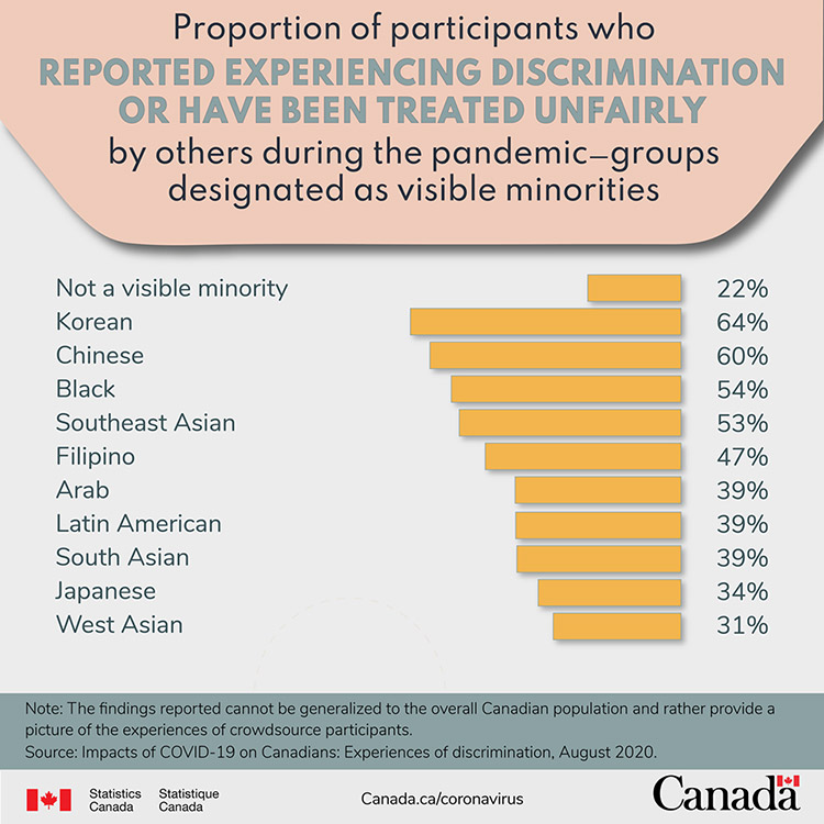 Source: Impacts of COVID-19 on Canadians: Experiences of discrimination, August, 2020.