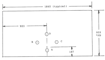 Two measurements, 10cm apart, are made immediately in front of the VDT screen (point "o") and two other measurements, 20cm apart, are made above the keyboard (point "v"); these four measurements are then averaged and the result must be less than the MAXIMUM specified in Schedule IV.