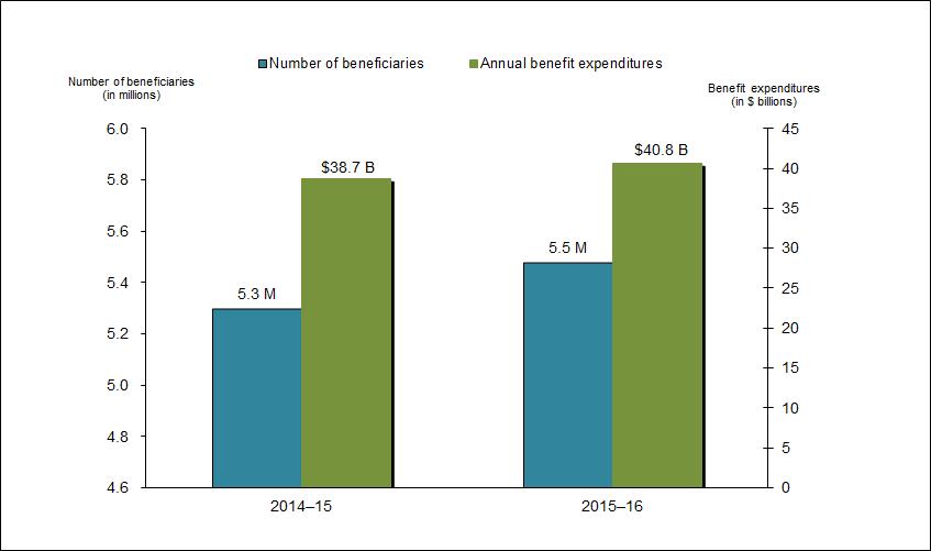 | Year | Number of beneficiaries (in millions) | Benefit expenditures (in $ billions) |