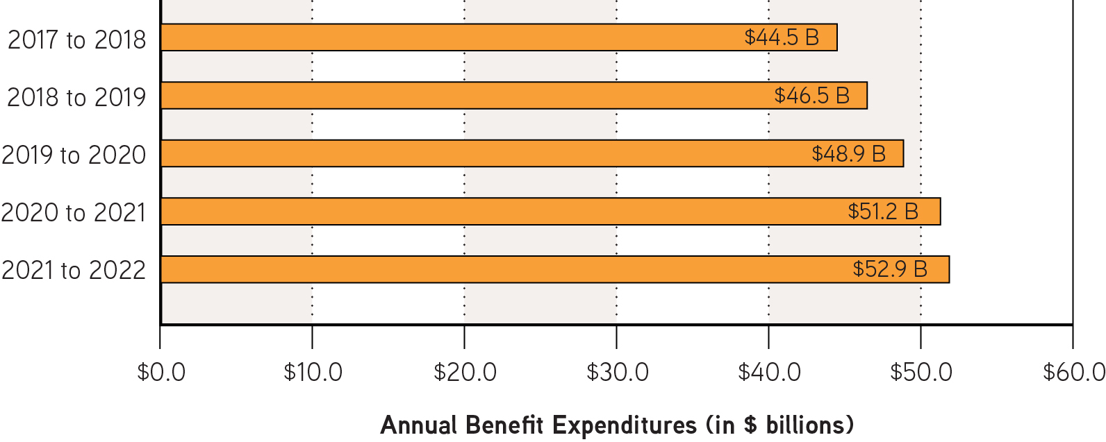 - Figure 1B: Annual benefit expenditures by fiscal year (in $ billions)