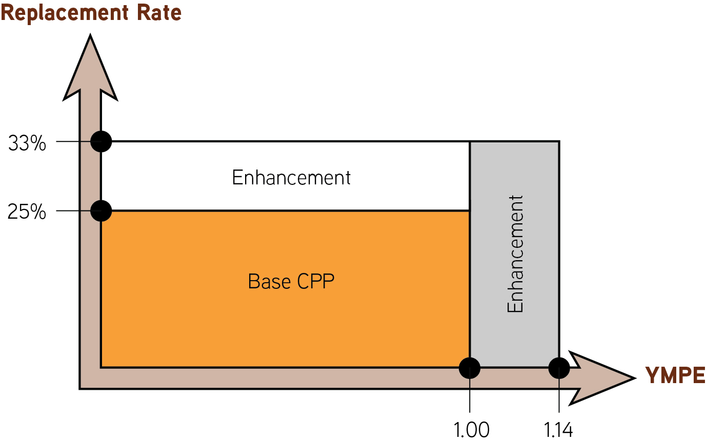 - Figure 3: Illustration of enhancement replacement rate and year's maximum pensionable earnings (YMPE)