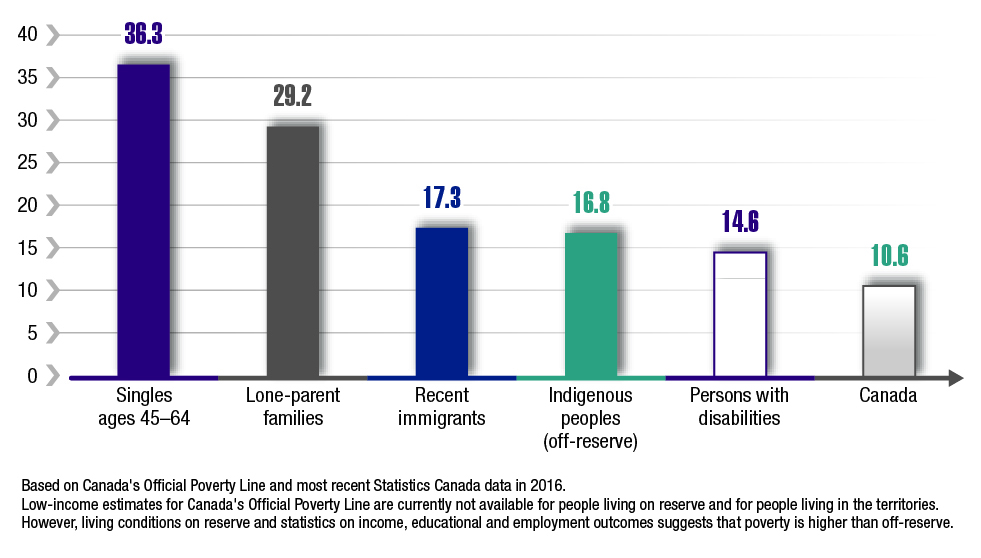 While some Canadians may be more vulnerable to poverty than others, no one is immune. Some individuals work two or three jobs but still live on a low income. Others are working hard to get ahead but face individual, structural, and systemic barriers, including discrimination.