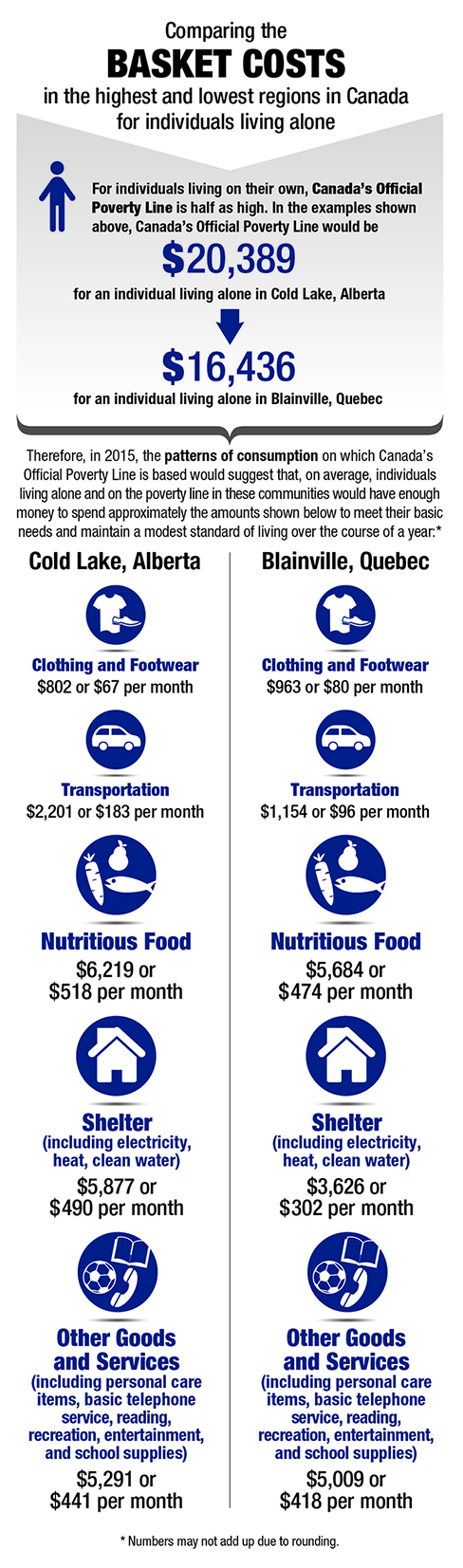 The cost of each item in the basket is directly linked to the prices of these items in communities across Canada. Canada's Official Poverty Line reflects poverty thresholds for 50 different regions across the country, including 19 specific communities. Wherever individuals and families are living across the country, if they cannot afford the cost of this basket of goods and services in their particular community, they are considered to be living below Canada's Official Poverty Line—that is, living in poverty. Statistics Canada will update the basket to reflect the reality of what is needed to participate in society today and going forward, with further updates taking place on a regular basis.