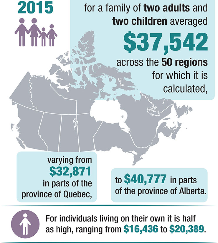 Canada's Official Poverty Line will be calculated using what is currently known as the Market Basket Measure. Canada's Official Poverty Line reflects the combined costs of a basket of goods and services that individuals and families require to meet their basic needs and achieve a modest standard of living. The basket includes items such as healthy food, appropriate shelter and home maintenance, and clothing and transportation. It also includes other goods and services that permit engagement in the community, particularly for children, youth, parents and seniors.
