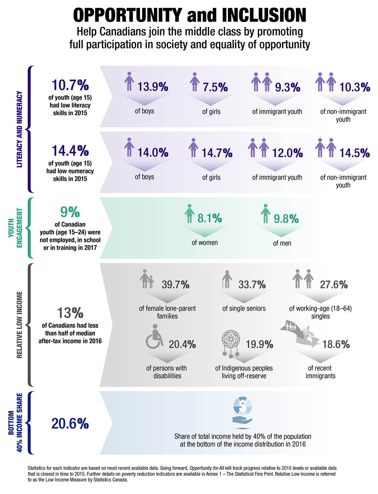 - Opportunity and Inclusion – Helping Canadians join the middle class by promoting full participation in society and equality of opportunity; and
