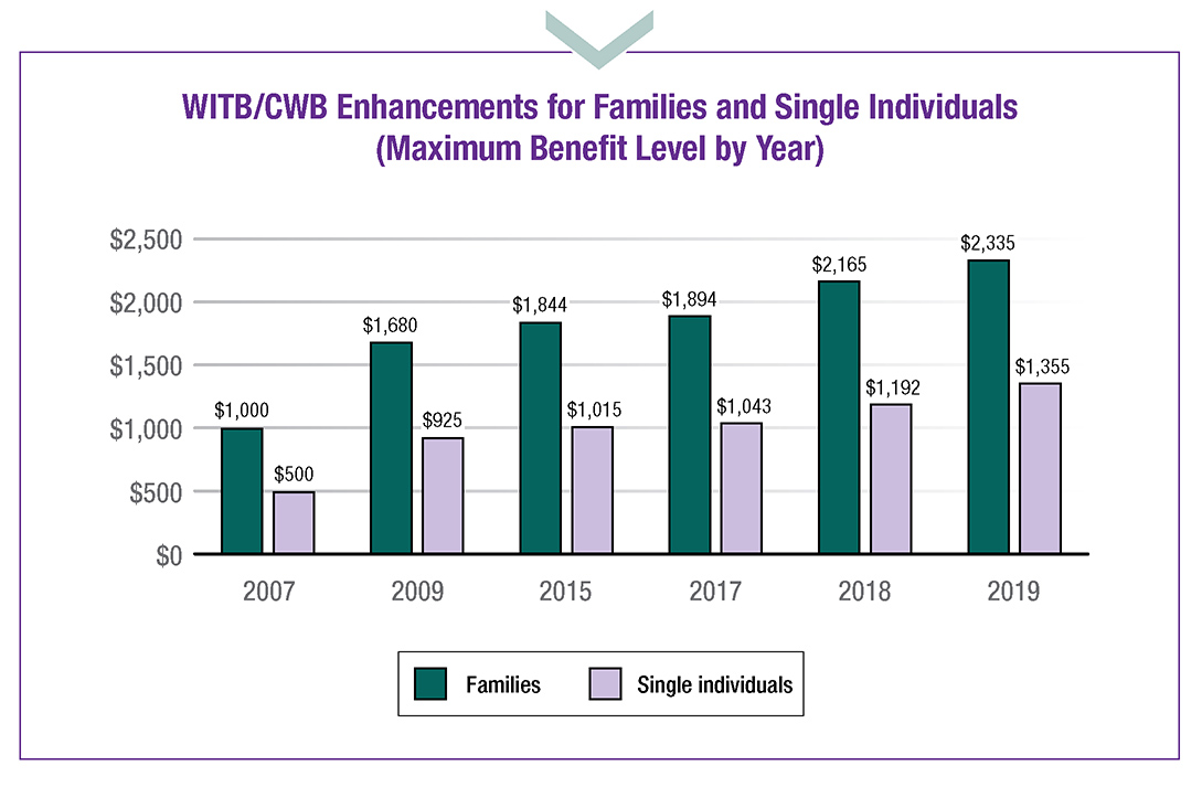 Through the Canada Workers Benefit, Melanie will receive almost $1,378 in 2019, $717 more than she would have received from the Working Income Tax Benefit in 2018.