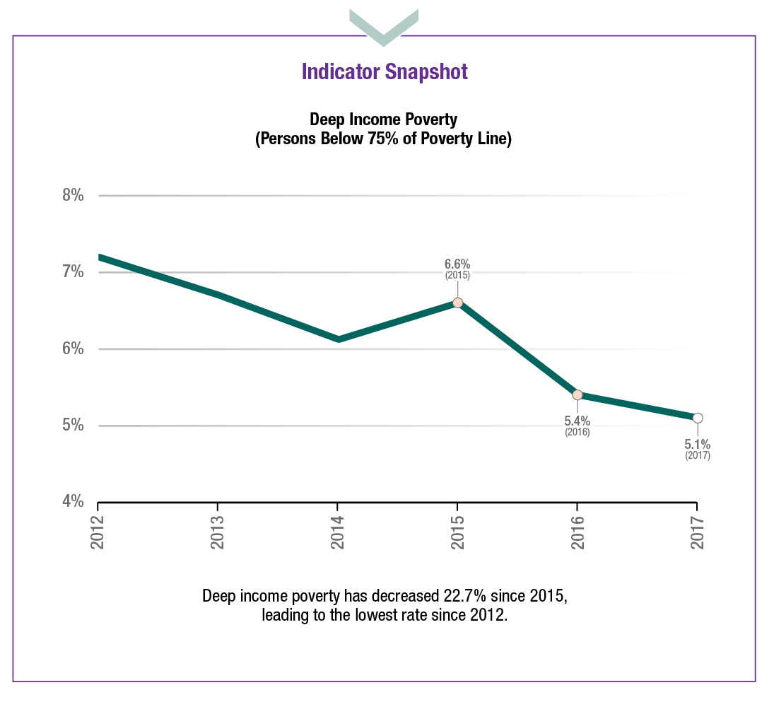 Deep income poverty has decreased 22.7% since 2015, leading to the lowest rate since 2012.
