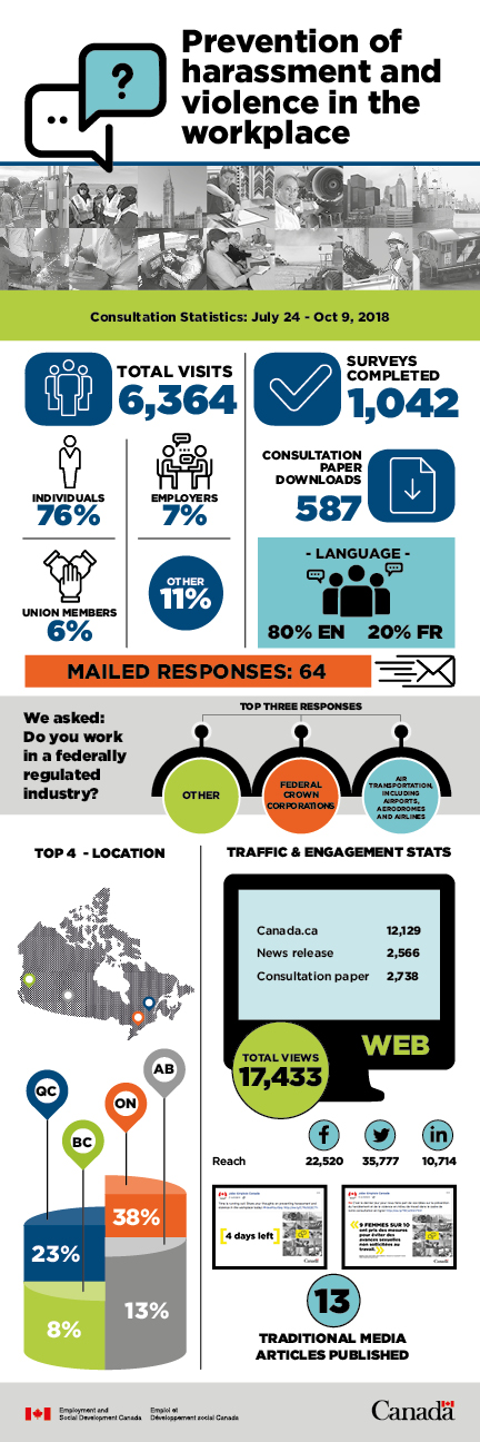The Government wanted to know what Canadians think about the proposed regulatory framework that supports Bill C-65, which aims to prevent and respond to all incidents of harassment and violence in federally regulated workplaces, and to support those who have experienced it.