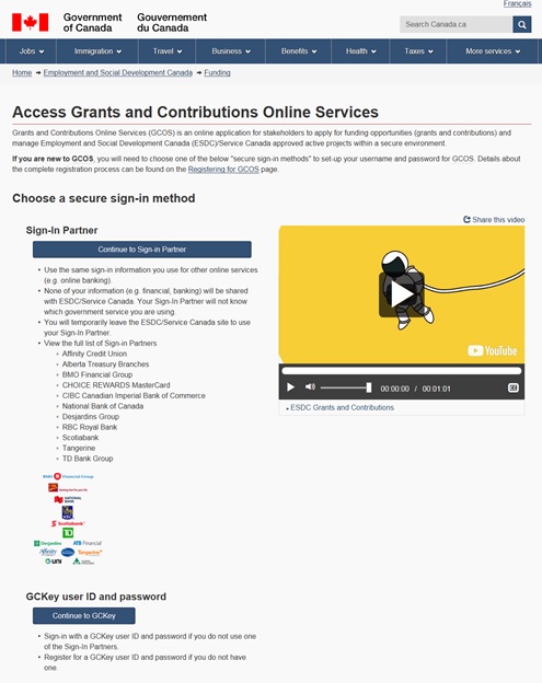 - click “Grants and Contributions Online Services”