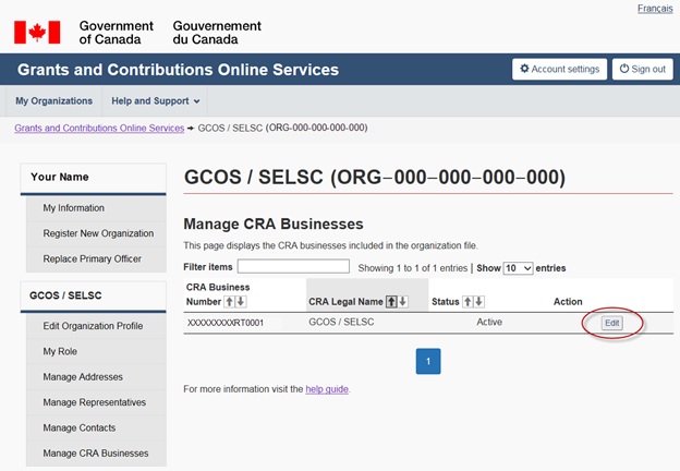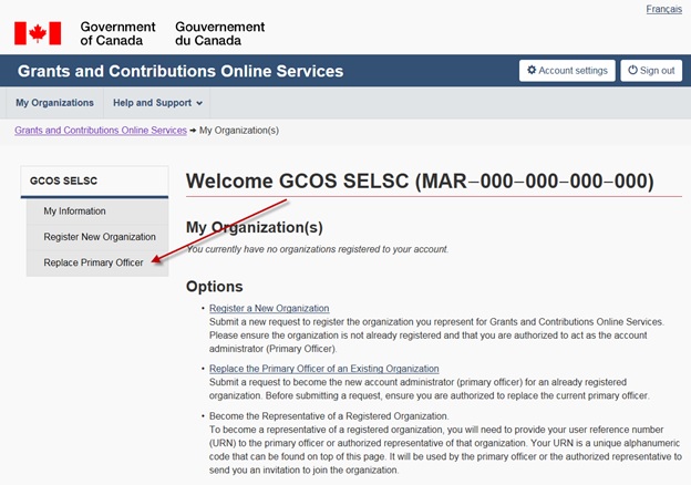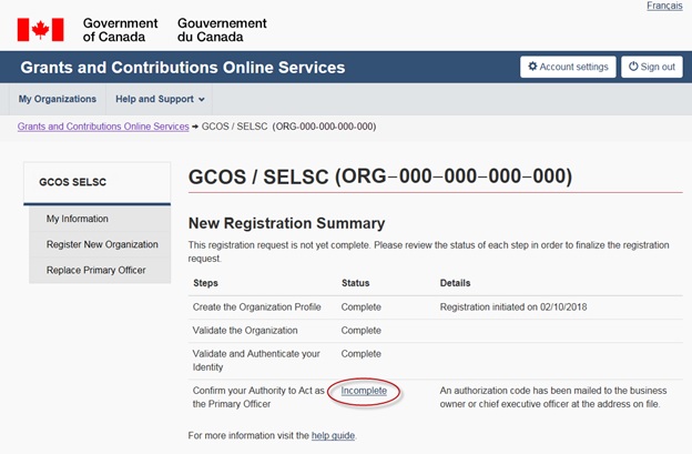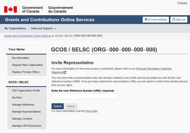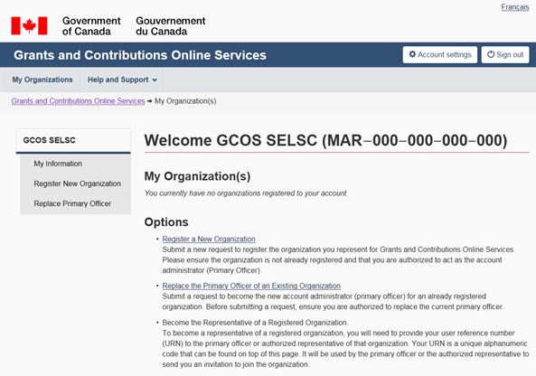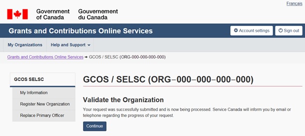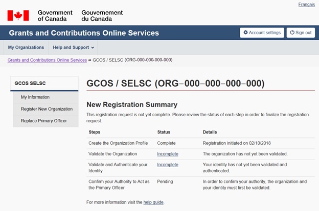 Grants and contributions online services: User guide (Account registration and account management)