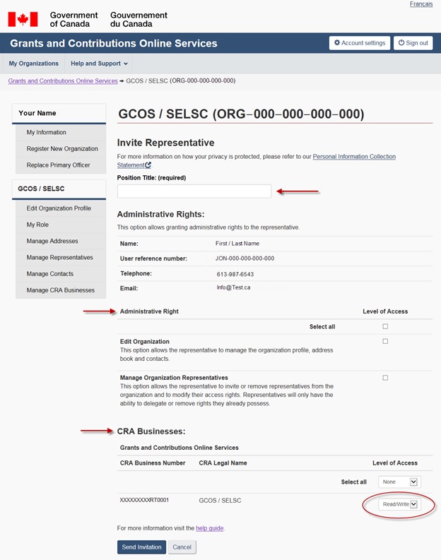 - Read/Write - Full access to view and amend GCOS information related to the business. Full access to create grants and contributions items related to applications, projects and project management