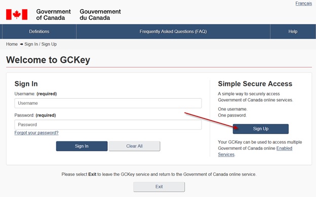 If signing in through the GCKey method, you’ll need to register for a new GCKey to create your user profile for GCOS. You will not be allowed to access GCOS with an existing GCKey. To register for a new GCKey, please follow the steps below: