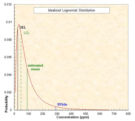 The LCL should be calculated when many measurements are taken at a work place for the purpose of an industrial hygiene monitoring program as part of the internal responsibility system. If a measured sampling value is slightly greater than its respective TLV or OEL, then the LCL should be calculated. If the LCL subtracted from the measured sampling value is still greater than the TLV or OEL, then there is non-compliance. Refer to the NIOSH publication, Occupational Exposure Sampling Strategy Manual for LCL formulas and example calculationsFootnote 6.