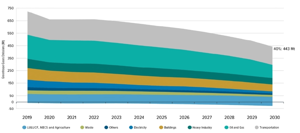 - 2015: The Government of Canada committed to reduce greenhouse gas emissions by 30% below 2005 levels by 2030, under the Paris Agreement.