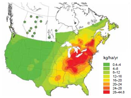 Source: National Atmospheric Chemistry (NAtChem) Database (www.ec.gc.ca/natchem/) and the National Atmospheric Deposition Program (NADP) (nadp.isws.illinois.edu/, 2010