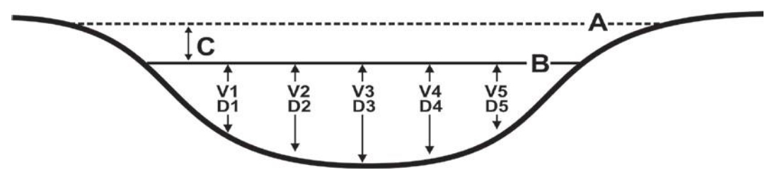 Wetted widths > 5 m, measure a minimum of 5-6 equidistant locations.