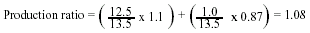 Your facility's only use of toluene was as a paint carrier for a painting operation. You painted 12 000 refrigerators in the current reporting year and 10 000 refrigerators during the preceding year. In this case, the production ratio for toluene was 1.2 (12 000 ÷ 10 000) because the number of refrigerators produced is the primary factor determining the quantity of toluene to be reported.