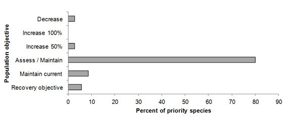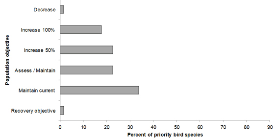 - Figure 7: Percent of priority bird species associated with each population objective category in BCR 14 NS.