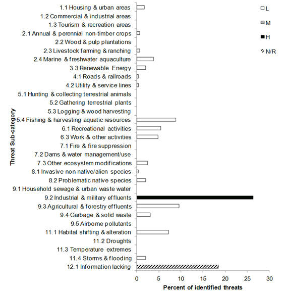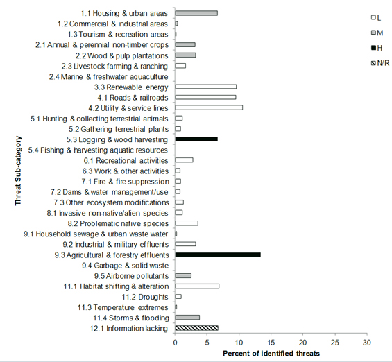 - Figure 10: Percent of identified threats to priority bird species within BCR 14 NS by threat sub-category.
