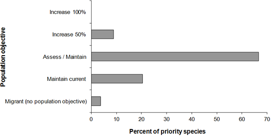 - Figure 4. Percent of priority species that are associated with each population objective category in BCR 4 in Canada: Northwestern Interior Forest.