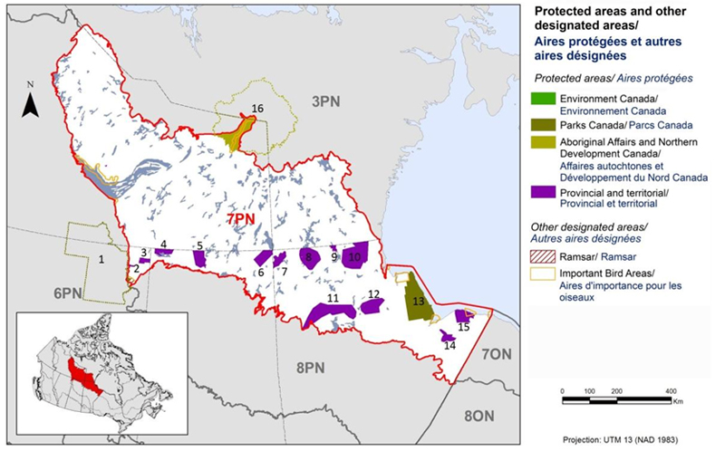 Figure 6: Protected and designated areas in and adjacent to BCR 7 Prairie and Northern Region.
