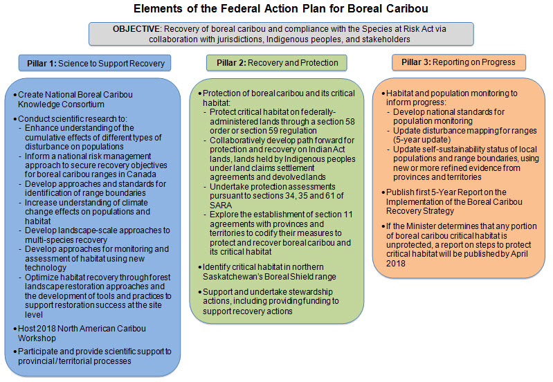 Elements of the Federal Action Plan for Boreal Caribou diagram explained below: