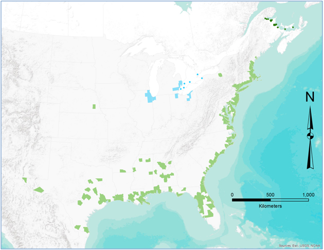 - Figure 2. Range of typical Annual Saltmarsh Aster (Symphyotrichum subulatumvar.subulatum) in eastern North America, modified from Kartesz (2015).