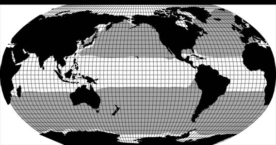 Figure 1. Global distribution of fin whales (grey shaded marine area). From Perry et al. (1999). Reprinted with permission.