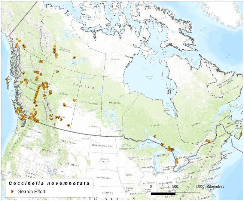 - Figure 2. The geographic range of the Nine-spotted lady Beetle (Coccinella novemnotata).