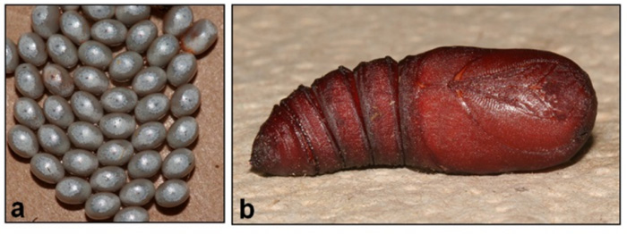 - Figure 3. Ova (a) and male pupa (b) of Nuttall's Sheep Moth