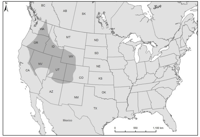 In Canada, Nuttall’s Sheep Moth is found in the bunchgrass shrub-steppe on dry, open slopes at low elevations where the only known Canadian larval host plant, Antelope-brush (Purshia tridentata), is most abundant. The main habitat is the Antelope-brush/Needle and Thread Grass plant community, which is fragmented by habitat loss; less than 33% of its historical mapped distribution remains in approximately 3200 ha in the Okanagan Valley.