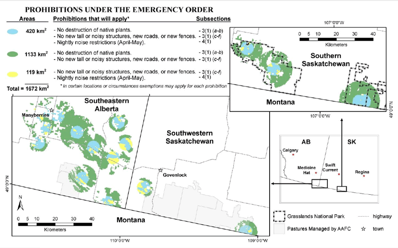 Both Alberta and Saskatchewan have listed the Sage-Grouse under their respective legislations and have undertaken measures to protect the species, however, neither province has specific endangered species legislation prohibiting destruction of Sage-Grouse critical habitat.