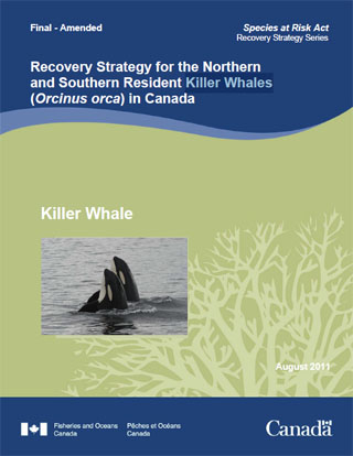 Fisheries and Oceans Canada. 2011. Recovery Strategy for the Northern and Southern Resident Killer Whales (Orcinus orca) in Canada. Species at Risk Act Recovery Strategy Series, Fisheries & Oceans Canada, Ottawa, ix + 80 pp.