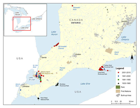 Marson, D., J. Barnucz, and N.E. Mandrak. 2010. Fish community sampling in National Wildlife Areas in southwestern Ontario, 2002-2005. Canadian Manuscript Report of Fisheries and Aquatic Sciences 2918: v + 47 pp.