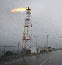 A large gas flare draws in birds during a period of fog and low clouds.Photo: Christian Marcoux © ECCC
