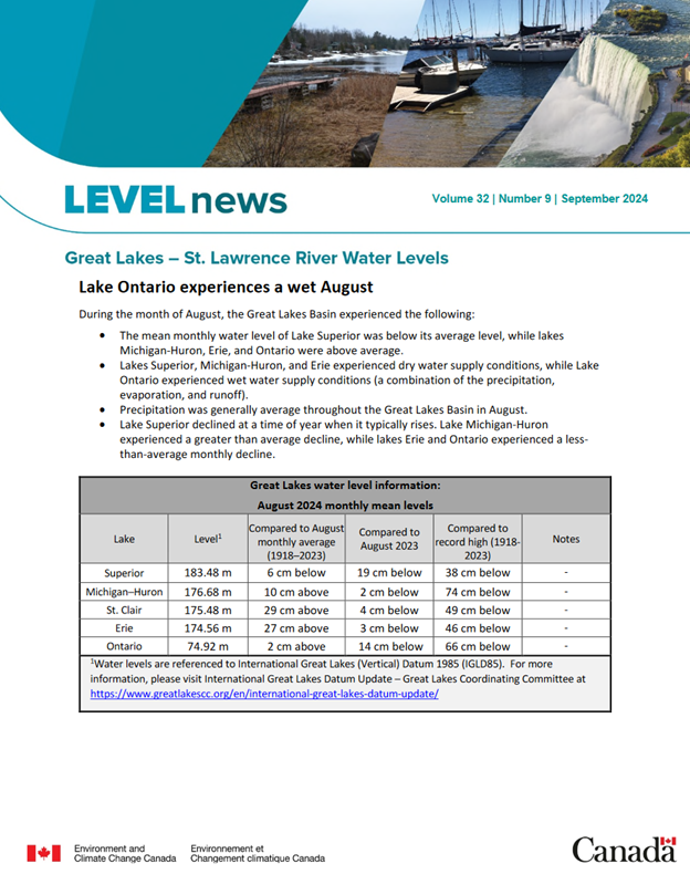 LEVELnews: Great Lakes and St. Lawrence River water levels, September 2024