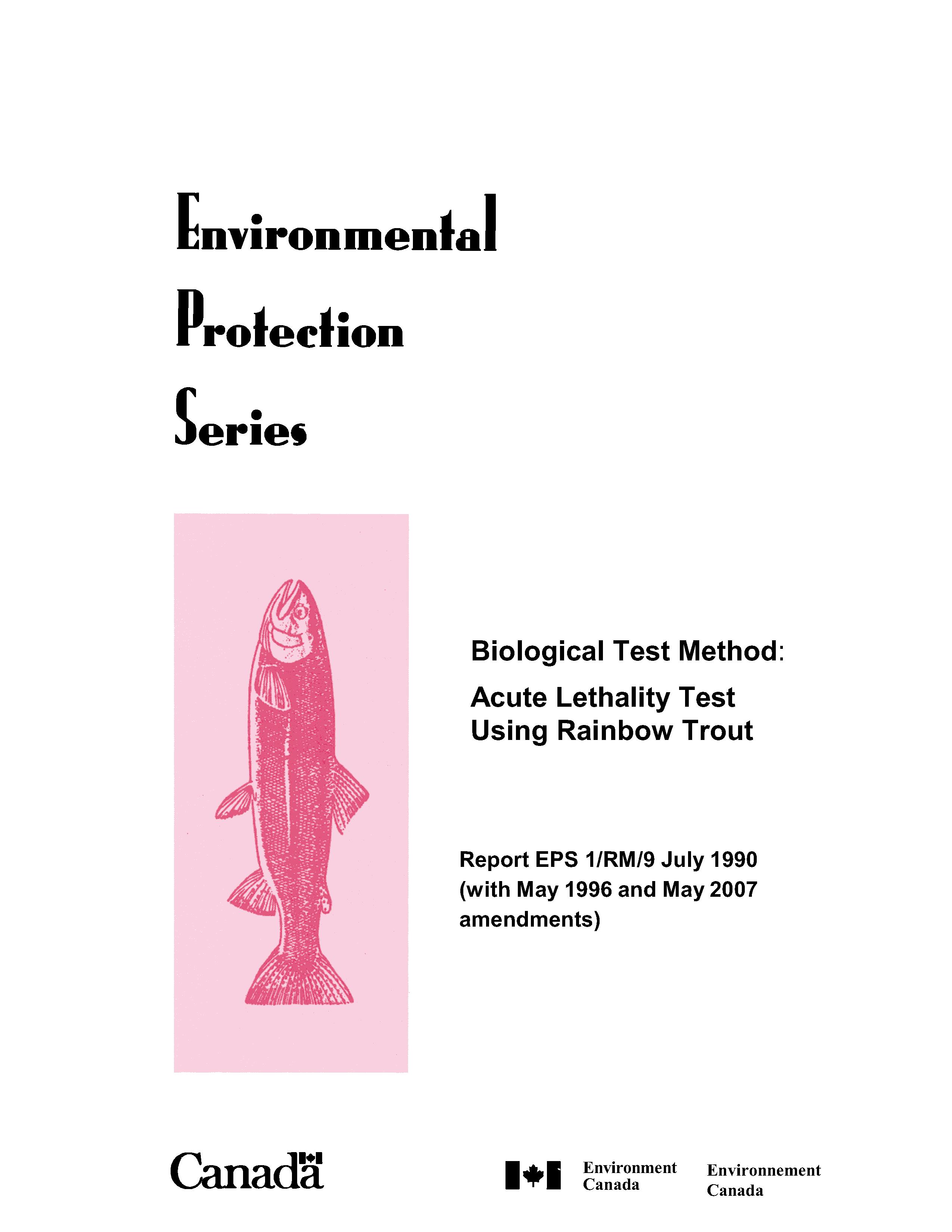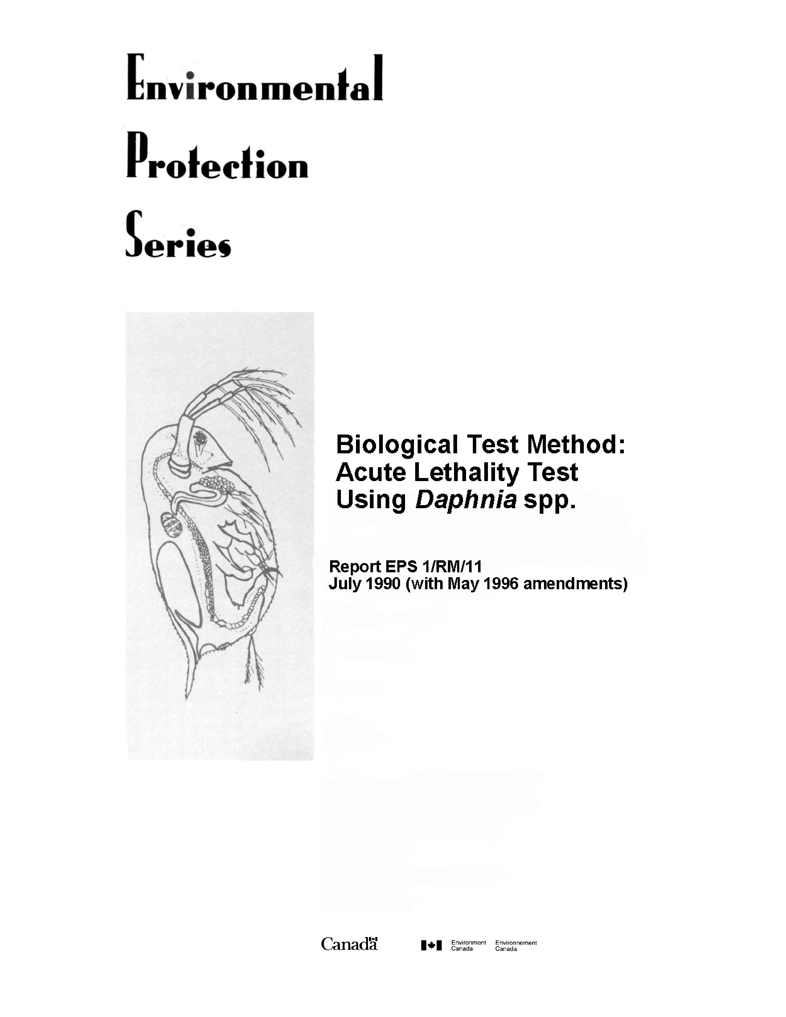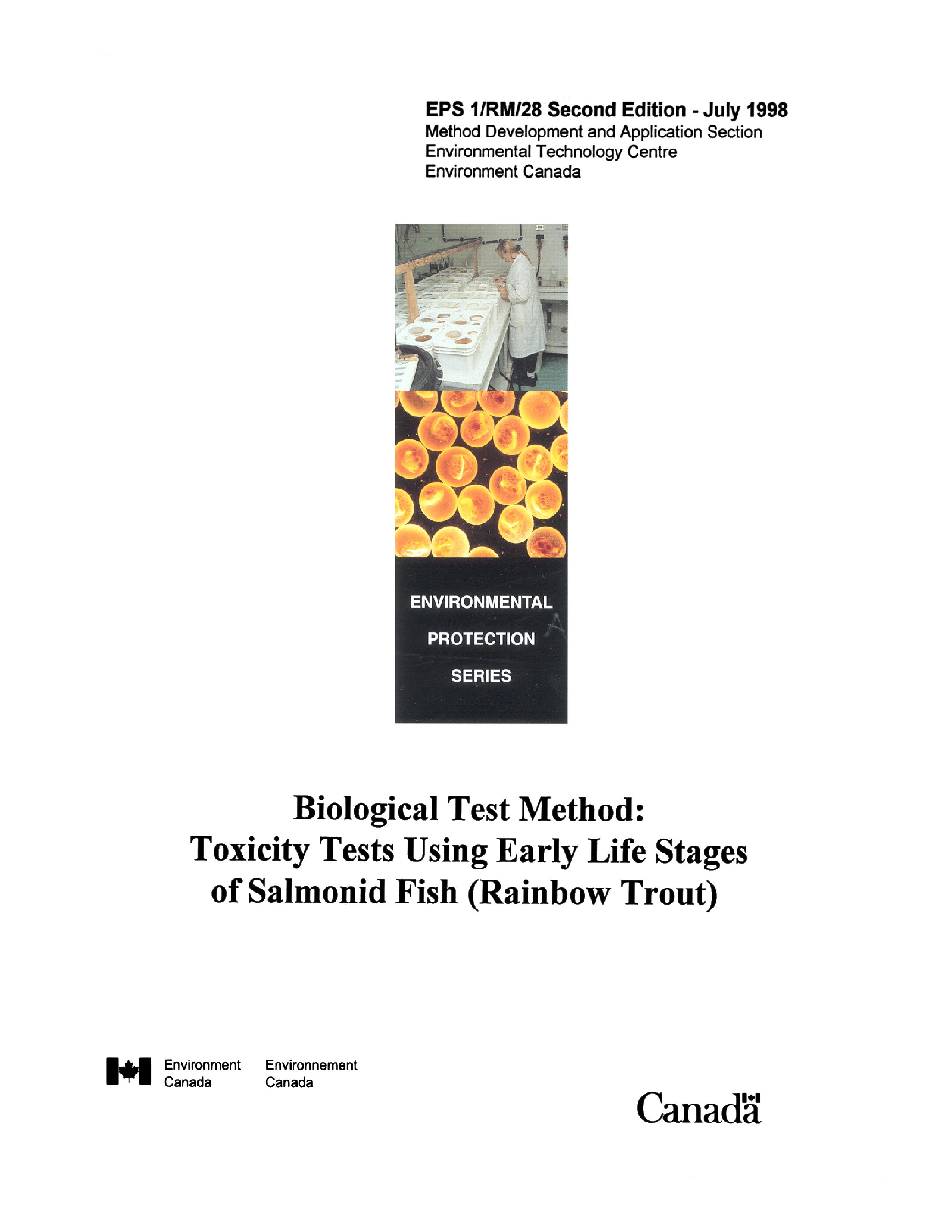 Publications: Biological test methods and guidance documents are amended periodically through the publication of amendment sheets to be used in conjunction with existing methods, or through the publication of subsequent editions. This table provides links to the most recent edition of biological test methods and guidance documents. It lists each report title, publication date with amendments, and a reference number.