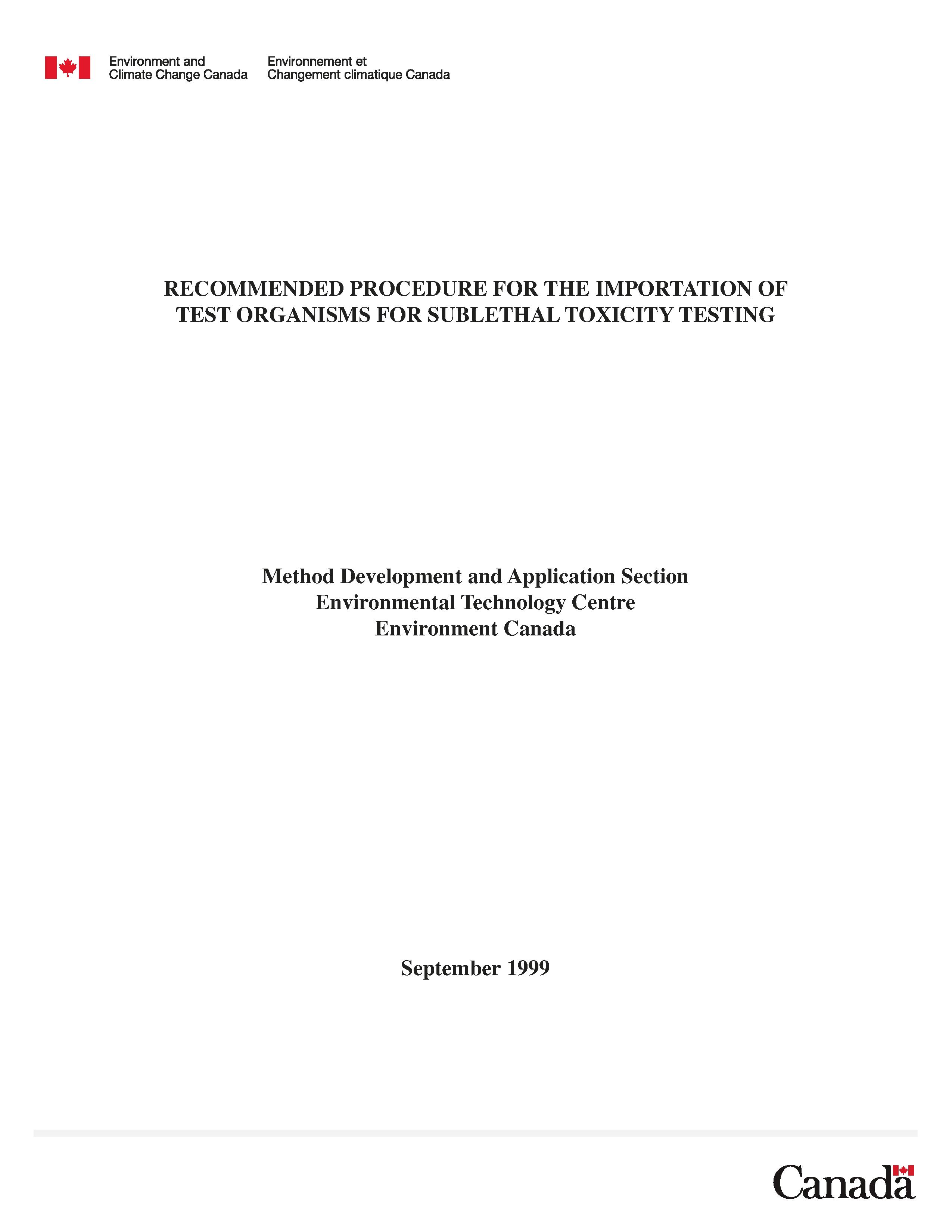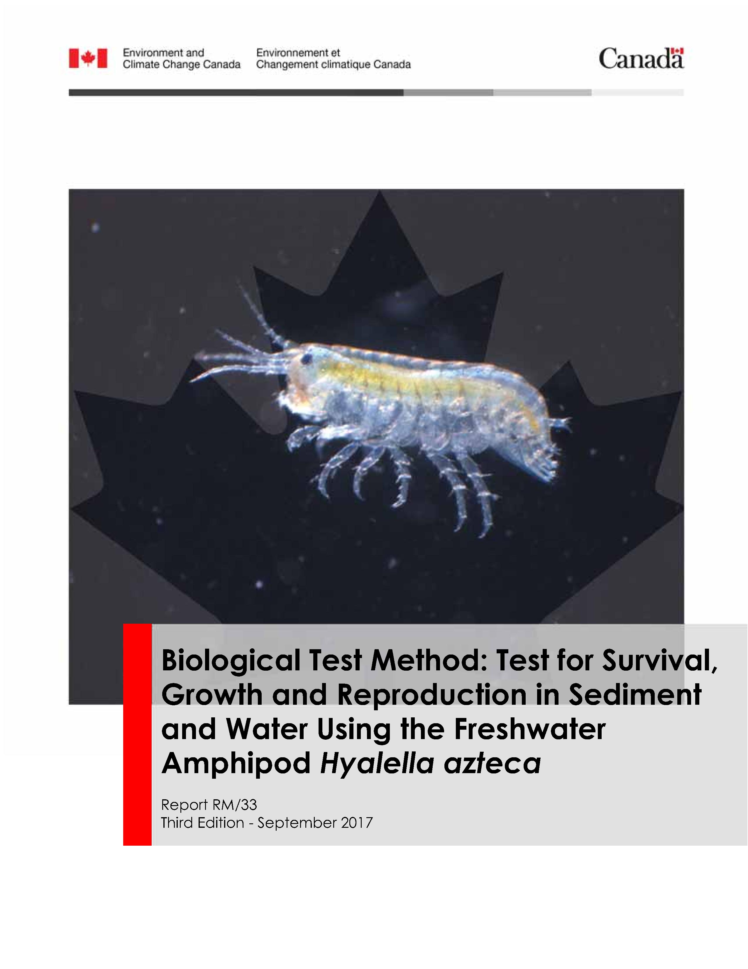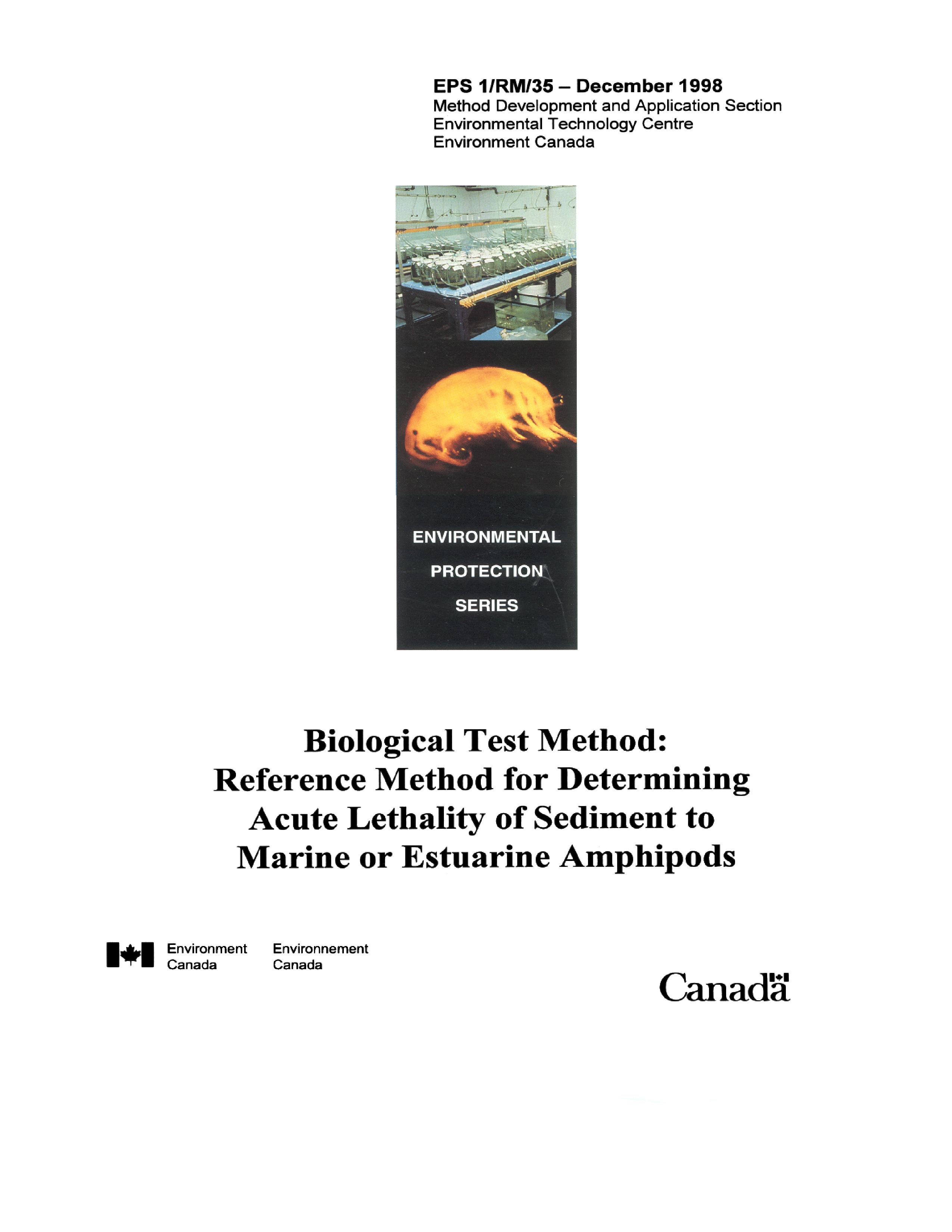 Publications: Biological test methods and guidance documents are amended periodically through the publication of amendment sheets to be used in conjunction with existing methods, or through the publication of subsequent editions. This table provides links to the most recent edition of biological test methods and guidance documents. It lists each report title, publication date with amendments, and a reference number.