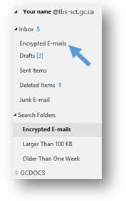 - Once you have finished preparing your search, you must re-encrypt the emails in the Encrypted Emails subfolder in your Inbox in order to protect this information from potential unauthorized access according to the Directive on Security Management.