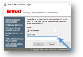 - In the login window, enter your password and select OK. You will now be able to read your encrypted messages. *Note: Your Entrust session may timeout and you may be prompted to log back into Entrust.